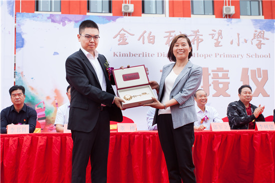 之后,董搏先生代表金伯利钻石集团向金伯利希望小学捐赠意寓开启智慧之门的“金钥匙”。