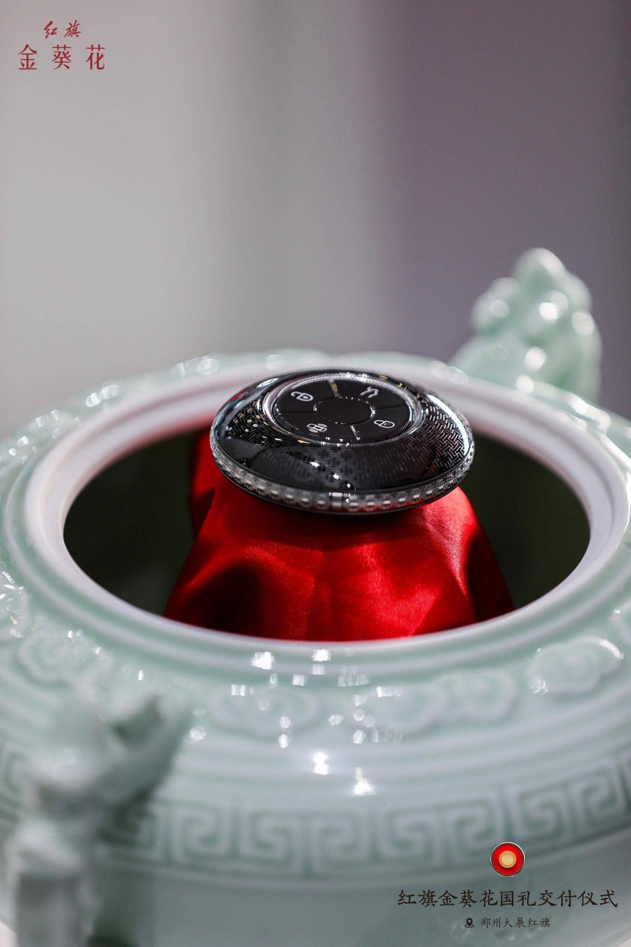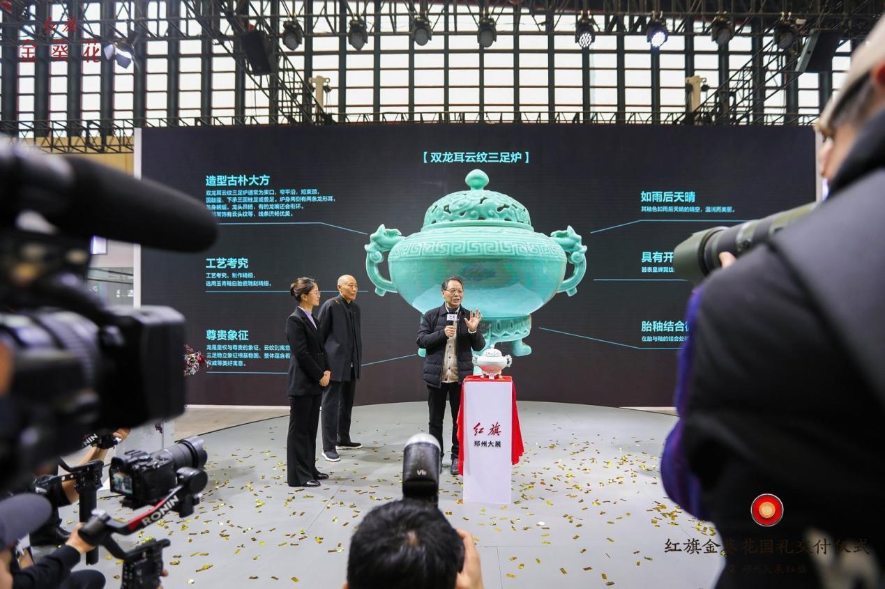 典礼的高潮——国礼车钥匙交付仪式别出心裁。钥匙静置于国宝级非遗大师、中国陶瓷协会副理事长李廷怀先生特别臻选的廷怀窑“双龙耳云纹三足炉”中,这件汝窑珍品与国礼车钥匙共同演绎了穿越千年的匠心对话。
