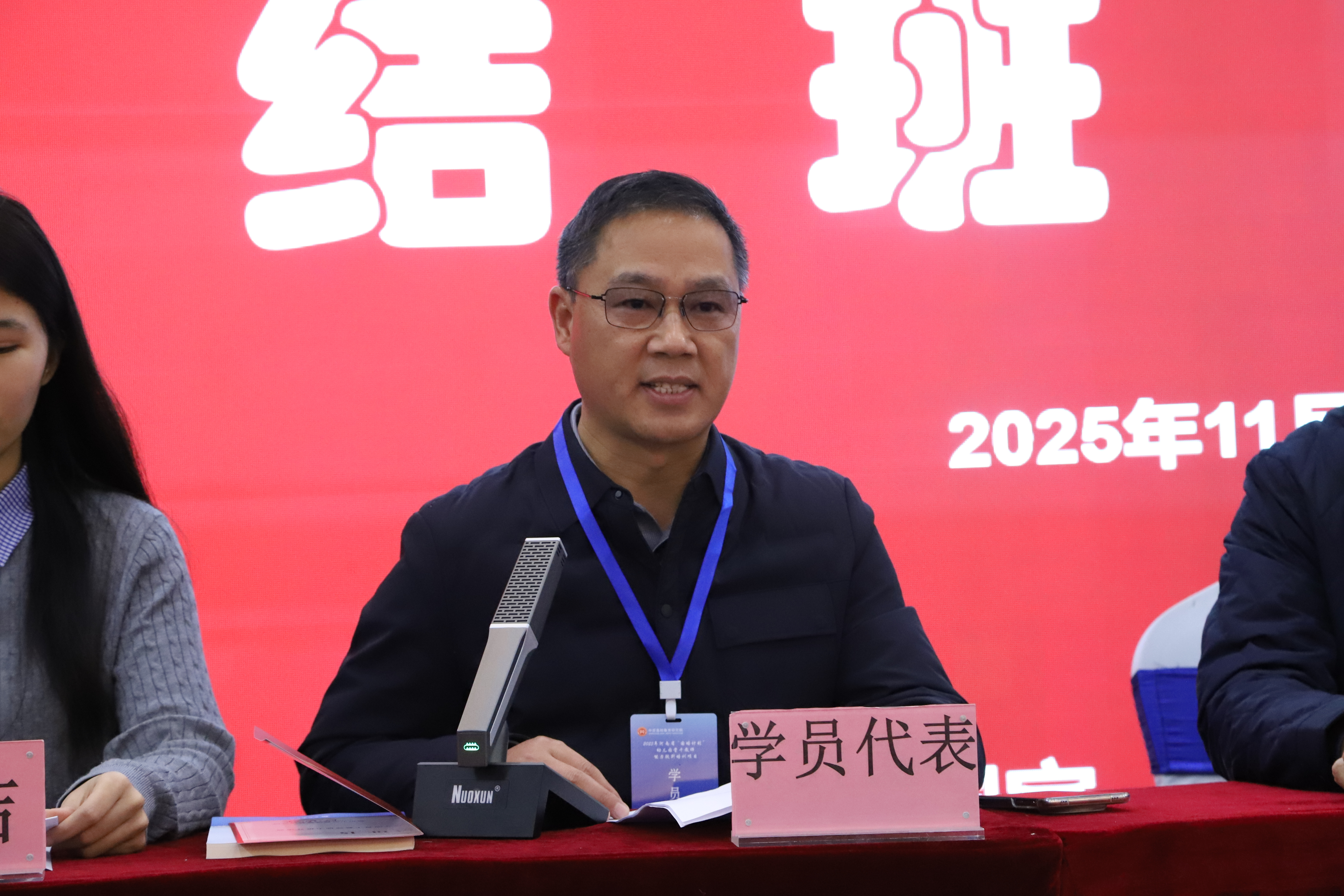 学员代表王怀波在发言中,代表全体学员向主办方研究院、专家导师及班主任表达诚挚感谢。他表示,此次培训为学员们提供了宝贵的学习平台,专家们的专业指导和班主任的悉心关怀为高效学习提供了坚实保障。他坦言,这次培训是一次重要的成长契机,结业不是终点,而是教育实践的新起点。全体学员将把所学理念和方法带回工作岗位,努力成为会观察、勤思考、有温度的幼儿教师,用专业与爱心助力幼儿在自主游戏中健康成长。