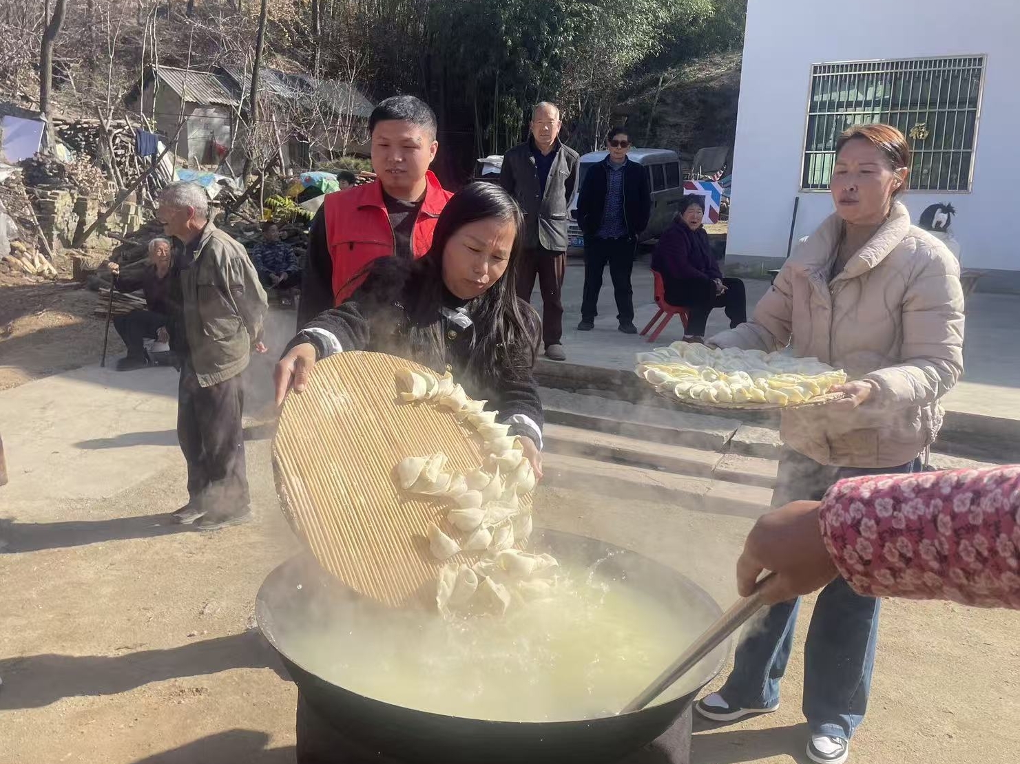 座谈结束后,饺子宴正式启动,帮扶人与村民们围坐一堂,揉面、擀皮、包馅分工协作,欢声笑语中,一个个饱满的饺子摆满餐盘,氤氲热气驱散了冬日寒凉。