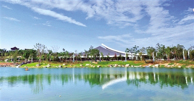 目前,园博园按时间节点基本完成建设任务,景观绿化工程基本完工,挖湖水面面积约59万平方米(已开始蓄水),公共区域市政工程、建筑场馆、综合管廊、联络道工程全部完成,水电气各项施工正在加紧扫尾,配套商业服务设施已逐步进入运营调试阶段。