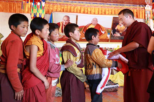 伽央喜喇坚赞上师,为阿坝州政协常委,红原县政协副主席,四川省佛协常务理事。上师爱国爱教,慈悲无量,不余遗力地为世界和平而努力,为悲悯众生痛苦,祈祷世界和平,消除战争,减少自然灾害和疾病,增长众生福慧,国泰民安,倡导发心修建佛教大塔——“和平塔”。 发心修塔的人们将由此功德圆满。