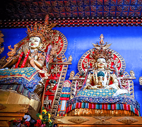 佛塔以佛菩萨四种舍利装点,其中有佛法经典《甘珠尔》、《丹珠尔》各一万套已全部装藏完毕;喇嘛伽央喜喇坚赞仁波切发心安放其中的10万尊莲花生大师佛像亦在陆续供奉中;还有八尊13~18米的大佛像已圆满供奉。