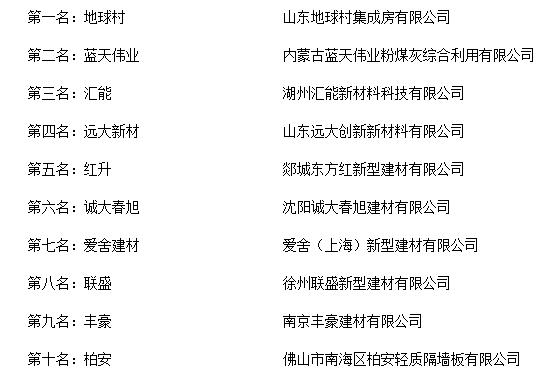 第十名:佛山市南海区柏安轻质隔墙板有限公司(柏安)