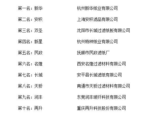 “2018年度中国滤纸十大品牌总评榜”荣耀揭晓