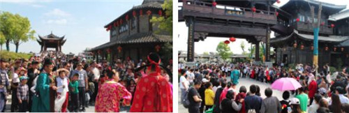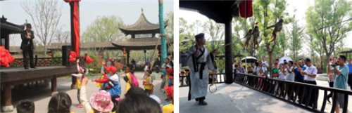 启封故园不但景色美,演艺节目也是精彩纷呈,全天三十多个节目轮番上演,从九点启封牌楼的《岳飞迎宾》,进入园区后游客可以参与互动的《状元及第》、《抢状元》、《拜花堂》,让妈妈笑的酣畅淋漓,看着母亲的笑,心里很欣慰。