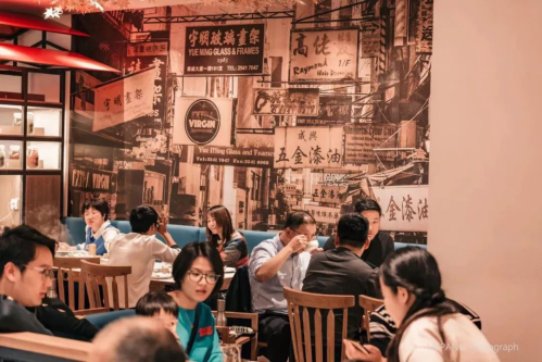 此外,区别于其他广式猪肚鸡的街边店风格,好彩·猪肚鸡从品牌视觉、风格定位上从一开始便具有自己的认知符号,不仅保留了广东市井的生活气息,也把“广式+港风”的色彩元素巧妙的运用到品牌视觉体系中,从空间上让猪肚鸡这一民间餐饮品类增添了几分时尚感。