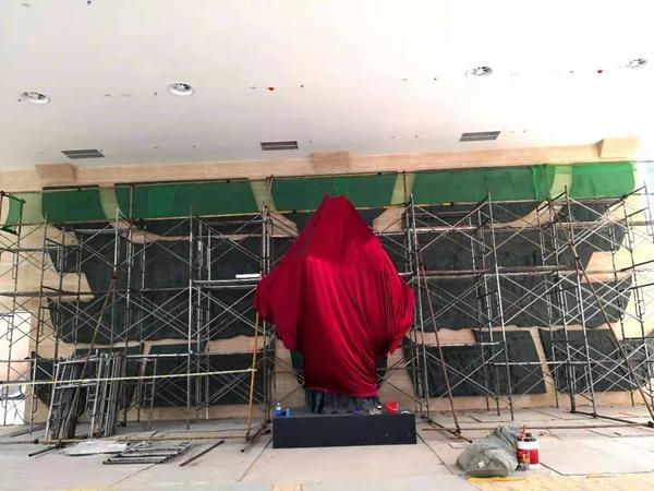 博物馆大厅内矗立巨尊塑像 神秘面纱待揭