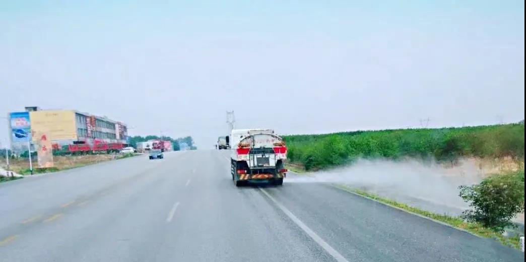 路面上的洒水车、洗扫车伴随着动听的音乐,在不停地洒水、洗扫,身着橘红色的养护工在不停地预防养护、刷白路林、清扫路面、清洗扶正路标、拾捡杂物、清运垃圾、会战路基、巡路保畅,为生态而战。