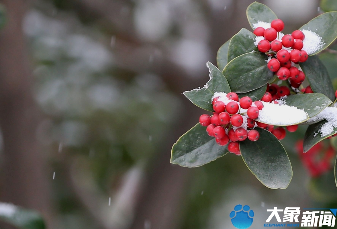 雪中的红豆分外妖娆。