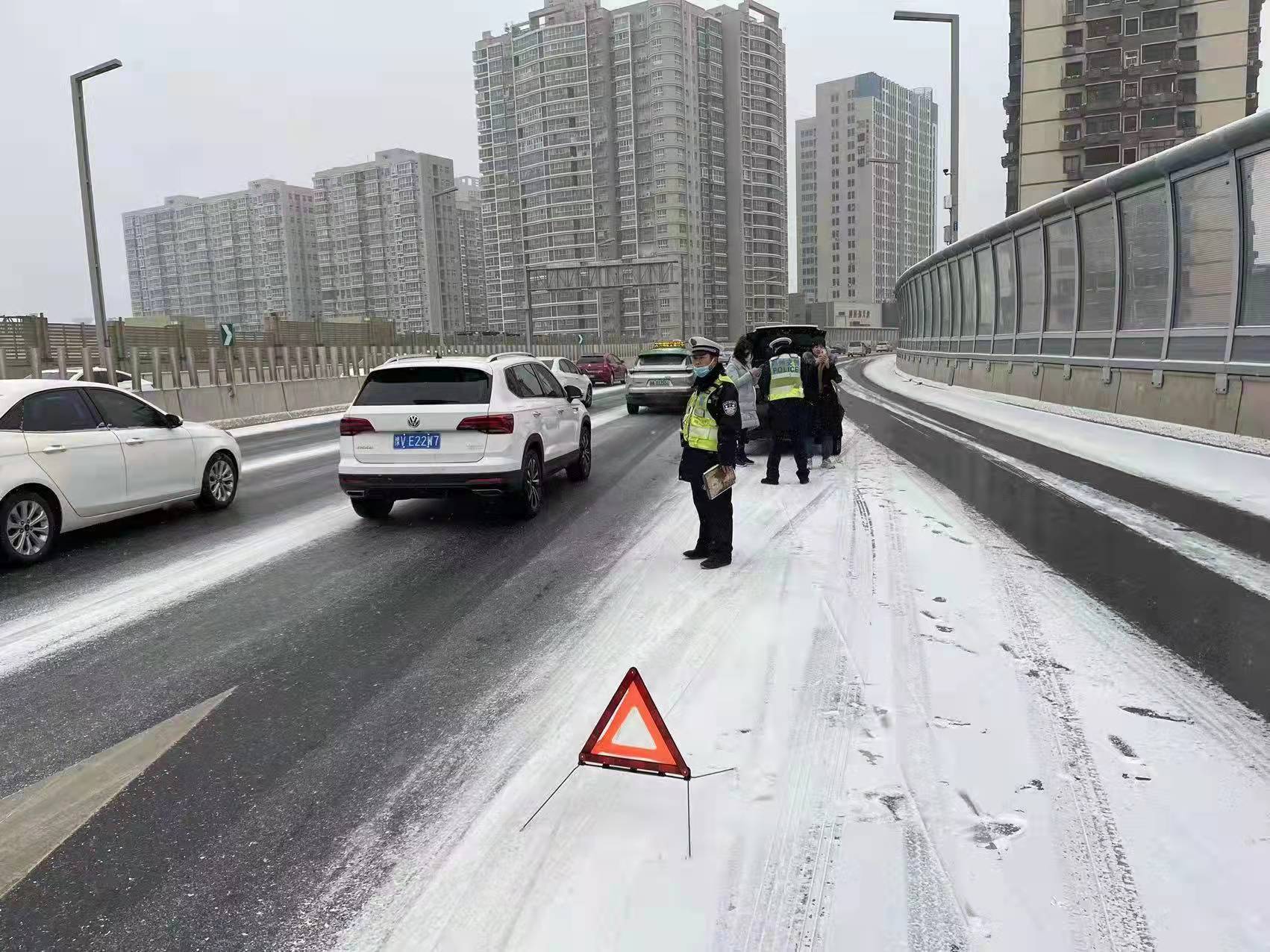 加强交通事故快速处置,事故拖车路面巡逻待命,减少事故车辆占用道路造成的拥堵;加强服务,对在道路上抛锚的车辆,尽快予以推离或拖移;同时联合新闻媒体结合支队官方自媒体平台,通过文字、图片、视频等新媒体形式,滚动播发实时路况和预警信息,向广大交通参与者发布雨雪天气安全出行提示。