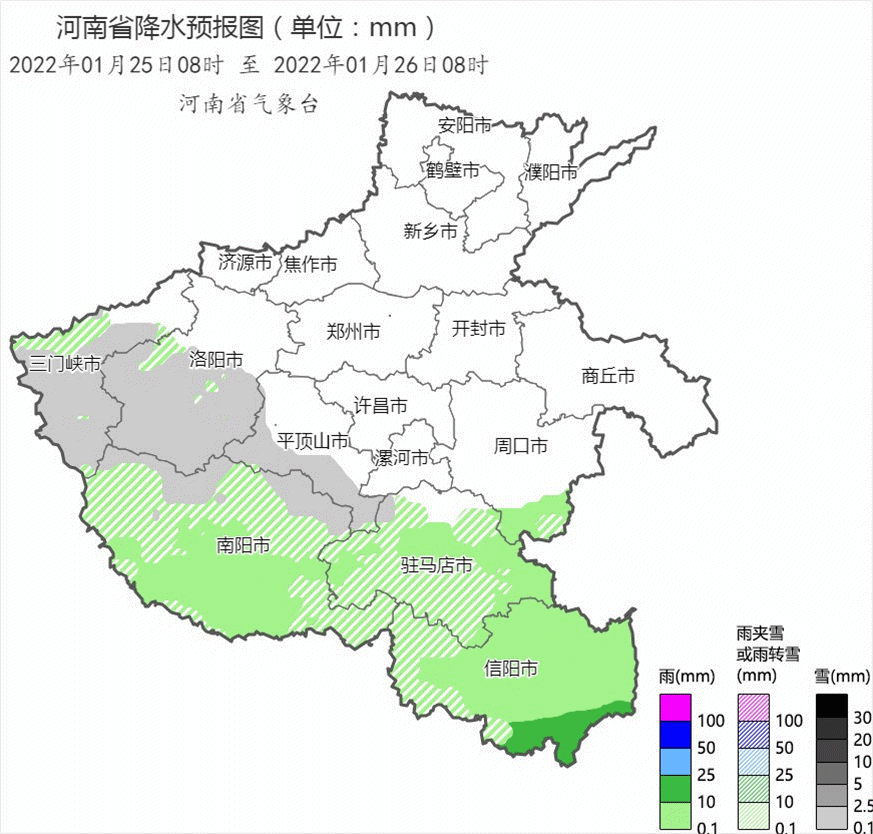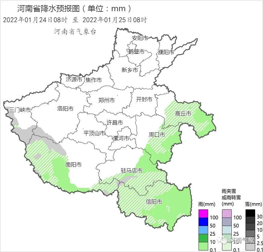 中西部有中到大雪,信阳地区有小雨或雨夹雪