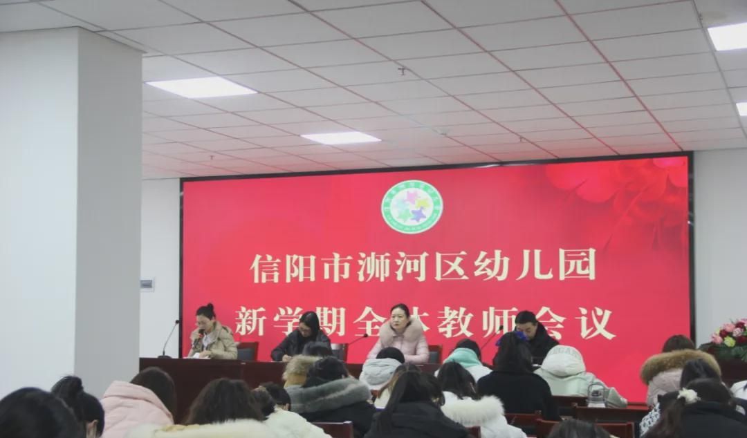 为做好2022年春季开学工作的安排和部署,推进各项工作的有序开展,全体教职工齐聚会议室,参加新学期工作会议。浉河区幼儿园领导班子从疫情防控、安全管理、师德师风、教育教学、卫生保健、后勤管理、开学前准备等方面部署了新学期的工作,全体教职工以饱满的精神拉开了新学期的序幕。