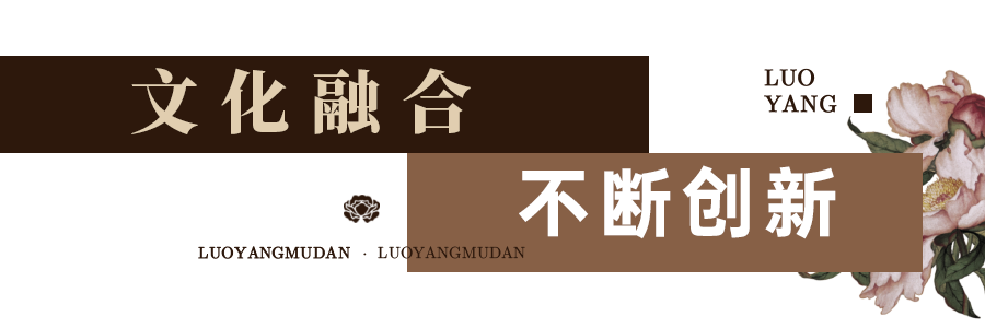 在代表13朝古都的古建筑剪影之上,从中心绽放出一朵巨大而盛开的牡丹花,牡丹层叠的花瓣象征洛阳腾飞,至此,“牡丹花都”的图案成为牡丹文化节的“主角”。