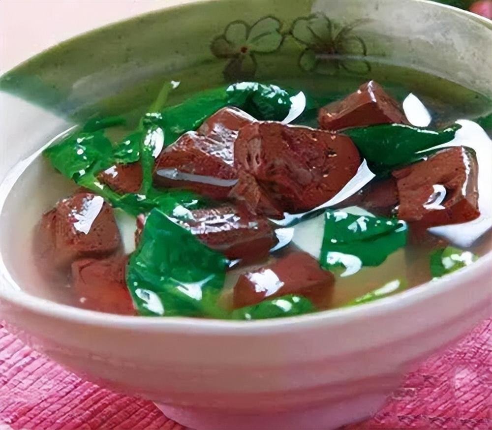 制作:将新鲜菠菜洗净切断,猪血切成块状,加清水适量煮汤,调味即可。佐餐,饮汤吃菜。每日或隔日1次,连服2~3次。