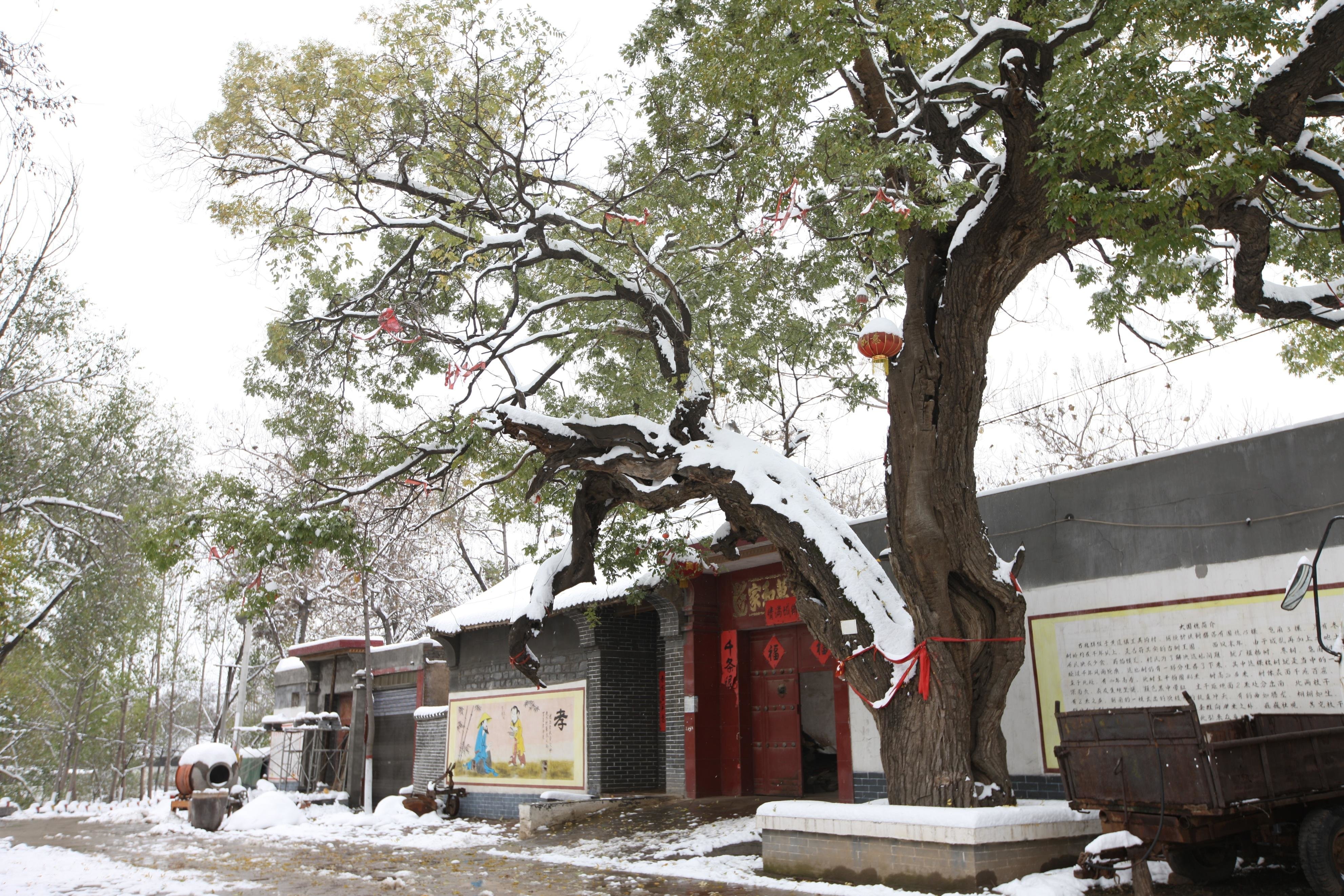 在村子河东的一株国槐,树龄2000年,它下垂的两条枝干形成一个小小的拱门,向上的另一条枝干延伸出十几米远。