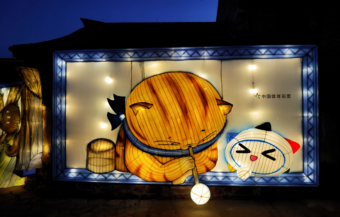 原来,这是河南省体彩中心携手河南网红打卡地建业电影小镇旅游景点,在新年到来时,为民众送上的一份独属观赏,乐小星携猫灯家族将在2022年的最后一天在电影小镇灯展区准时亮灯,就等您来欢乐赏灯。
