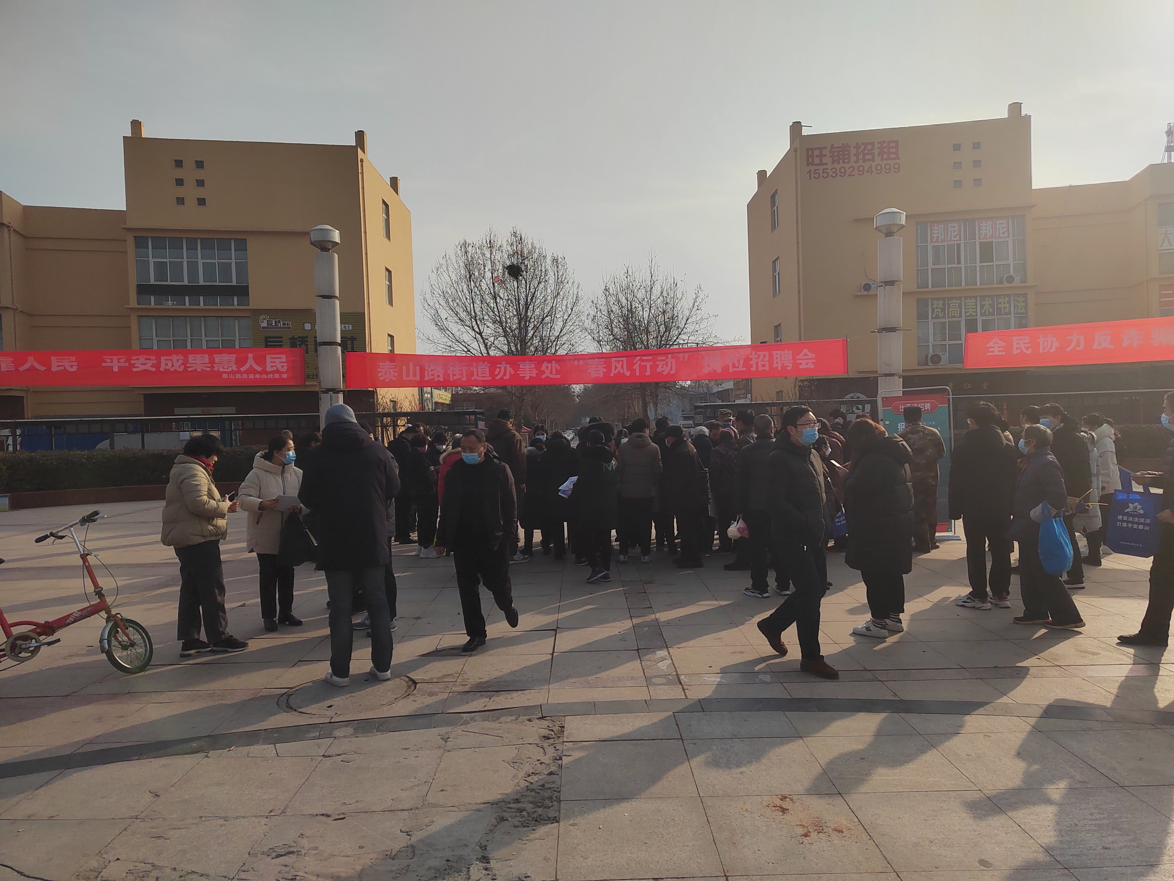 为深入贯彻落实淇滨区“稳就业”“保就业”决策部署,解决企业用工需求,促进高校毕业生、失业人员、农民工等重点群体就业,2月3日上午,泰山路街道举办了以 “春风行动”为主题的现场招聘会,为求职者和用人单位搭建了扎实的用工平台,此次招聘会吸引了众多有求职意向人员现场应聘,招聘现场设置了政策咨询服务台,为现场群众现场提供职业指导、岗位推介、政策咨询等就业服务,发放求职招聘指南、政策宣传材料1500余份。