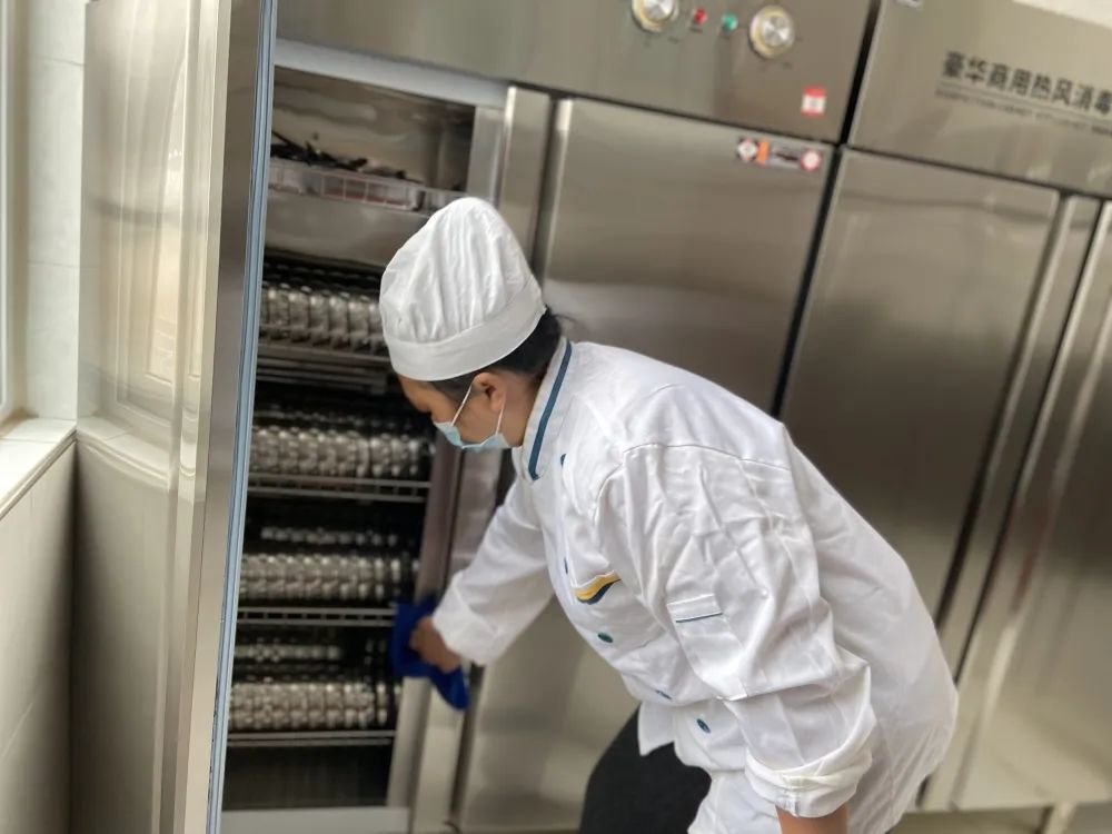幼儿园食品安全重于泰山,食堂是卫生监督的重中之重,每一个操作台、餐盘、消毒柜等,都务必做到一尘不染且摆放整齐。食堂工作人员全力投入其中,把食堂用品进行清洗,对食堂每一个地方,每一处角落都进行全面的清理,保障孩子们的用餐安全。