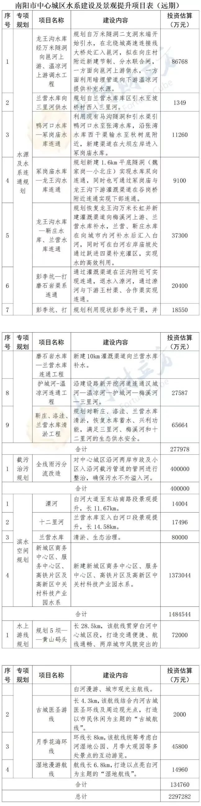 近日,南阳市人民政府办公室印发《南阳市中心城区水系建设及景观提升规划》。其中提出,规划范围北至南水北调中线总干渠、京宛大道,东至兰南高速、郑万高铁,西、南至宁西铁路、沪陕高速,总面积约410km2。规划基准年为2020年,水平年近期为2025年,远期为2035年。规划共分为四个专项:一是水源及水系连通规划,二是治污规划,三是滨水空间规划,四是水上游线规划。
