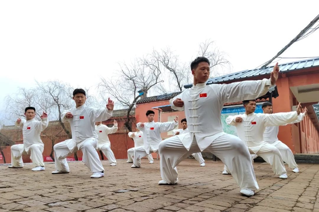 而在塔沟武校祖源校区门口,近400名功夫班、养生班、武术艺术表演团的学员纷纷亮出拿手技能,雪花纷飞下的塔沟小子动作或是刚猛有力、或是飘逸大方,他们向游客们奉献了一场精彩的“武术盛宴”。