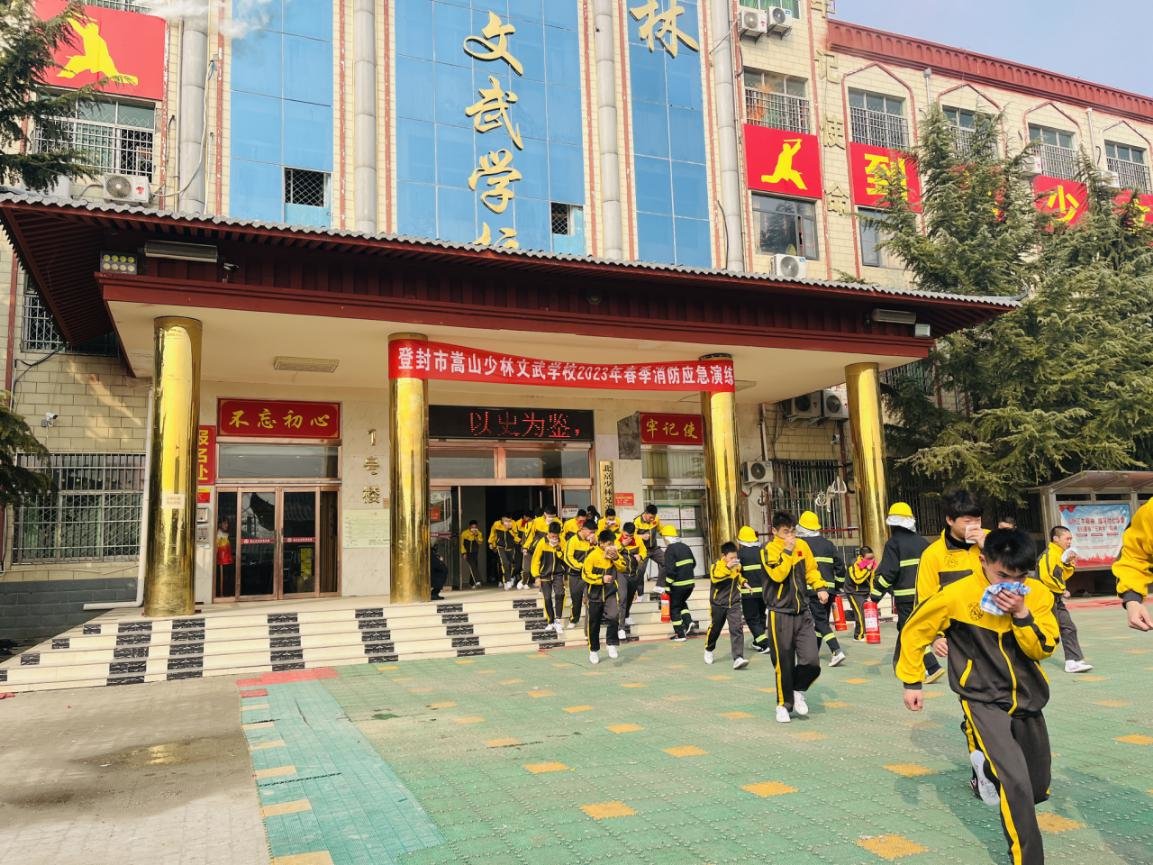 为了进一步加强登封市嵩山少林文武学校消防安全工作,增强师生消防安全意识,提高自救防范能力,确保生命安全。2月28日,登封市嵩山少林文武学校在登封市消防救援大队的指导下开展了消防疏散及灭火演练活动。