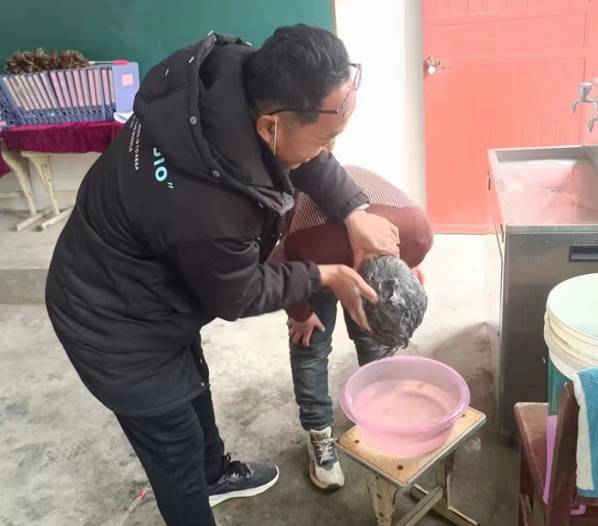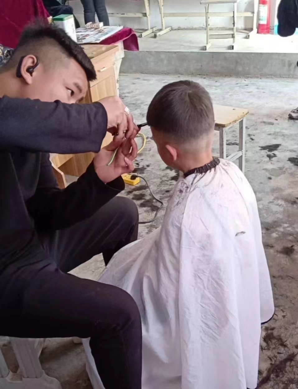 在2022年春天,姜庄小学校长陈永飞发现学校不少留守儿童头发长,有点还凌乱,就问学生为什么不理发,是不是没钱。学生说,不是没钱,爸爸妈妈出去打工,爷爷奶奶操持家务,没空带他去,自己又小,不敢一个人去理发。陈永飞就开始思考怎样解决这个问题。