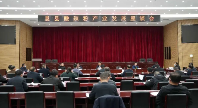 会议讨论了《息县全面推进酸辣粉产业升级发展的若干政策》,出席会议的县领导和与会单位代表从不同角度探讨了息县酸辣粉产业高质量发展的设想与规划,并重点针对产业带动、产品研发、品牌打造等方面提出宝贵意见和建议。