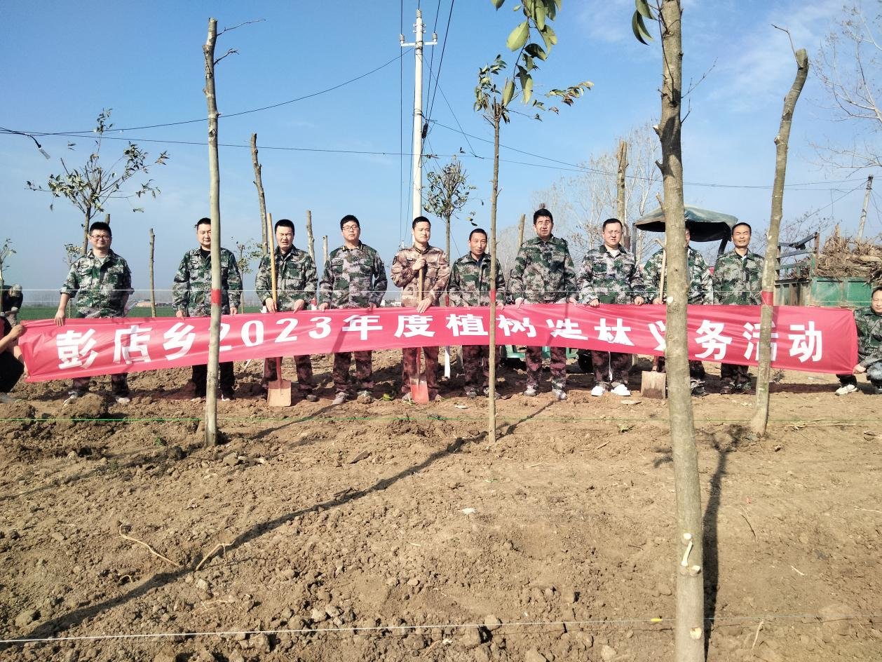 活动在彭店乡党委指导下,组织退役军人及志愿者20余人,由乡武装部长范云伟带领,前往彭店乡张庄村义务植树。以实际行动深入贯彻落实保护生态环境理念,营造绿色环境,助力乡村振兴。
