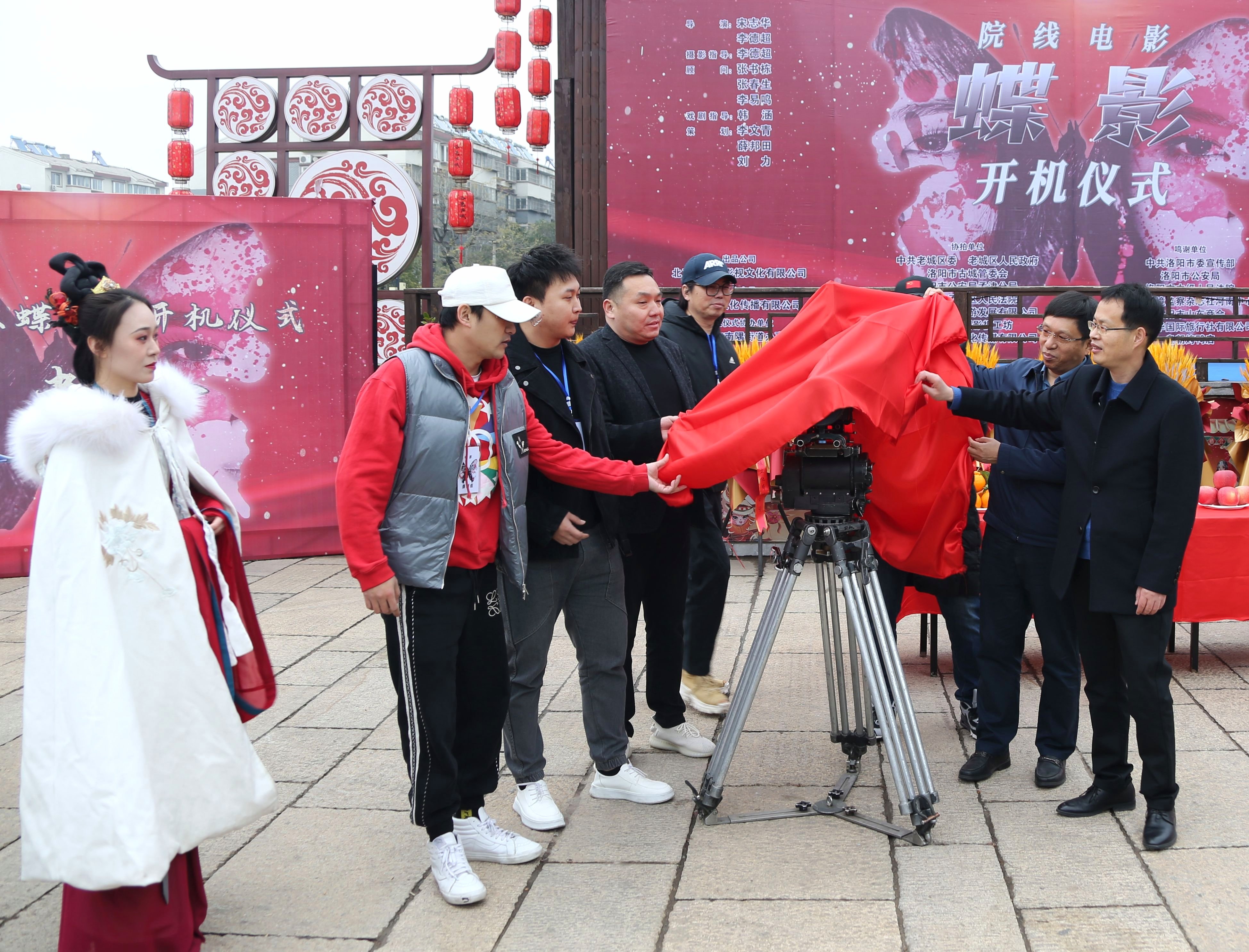 3月17日,电影《蝶影》开机仪式在洛邑古城隆重举行。原全国青联常委张宝彤,洛阳市文联党组书记、主席柴洪涛,洛阳广播电视台总编夏冰,老城区领导张占国、丁雪峰、谢育建及电影主创团队出席本次开机仪式。