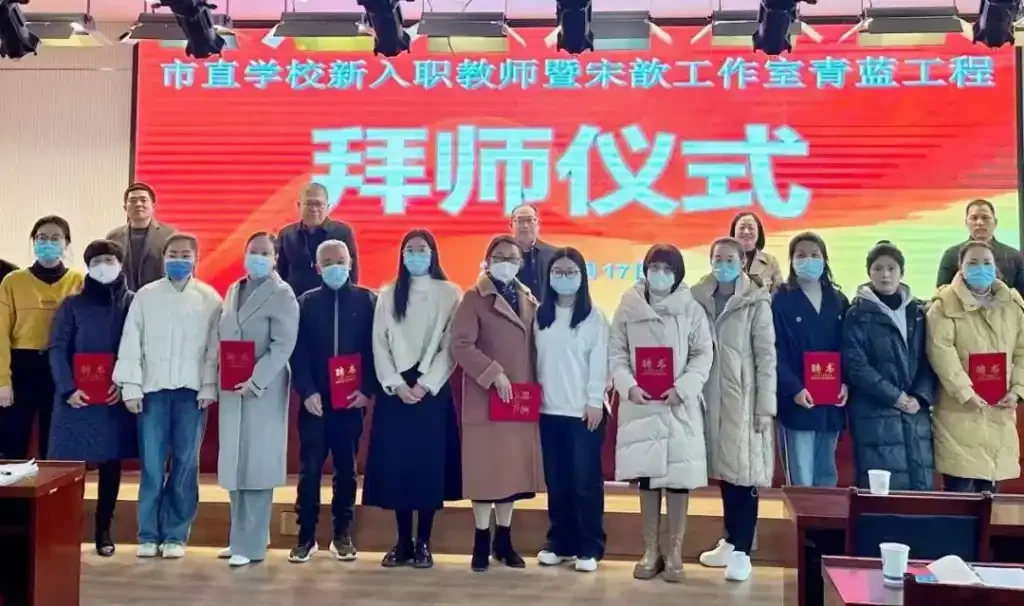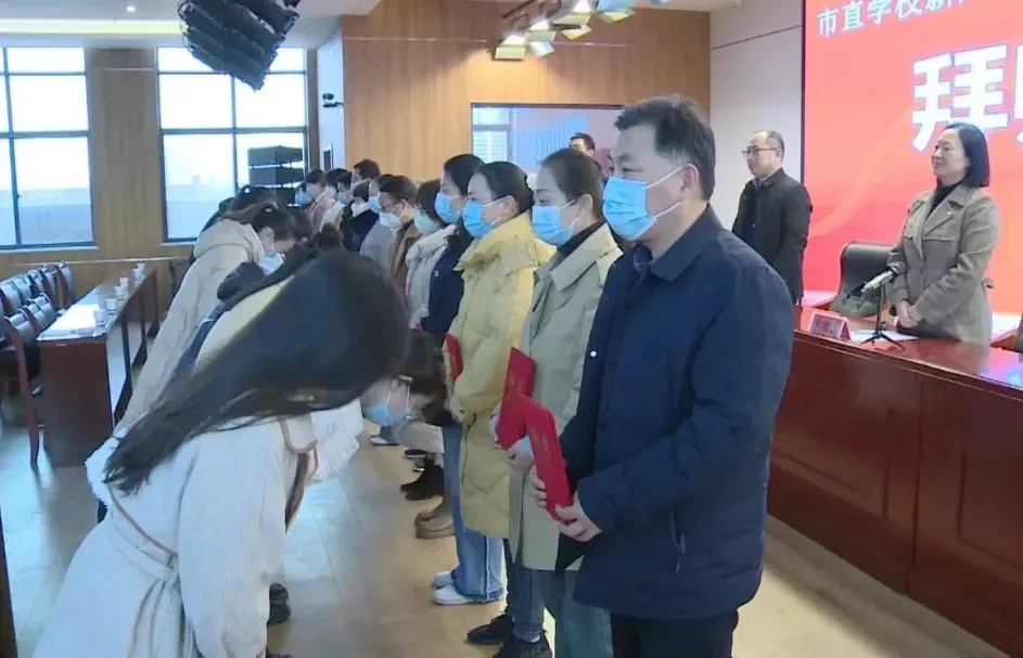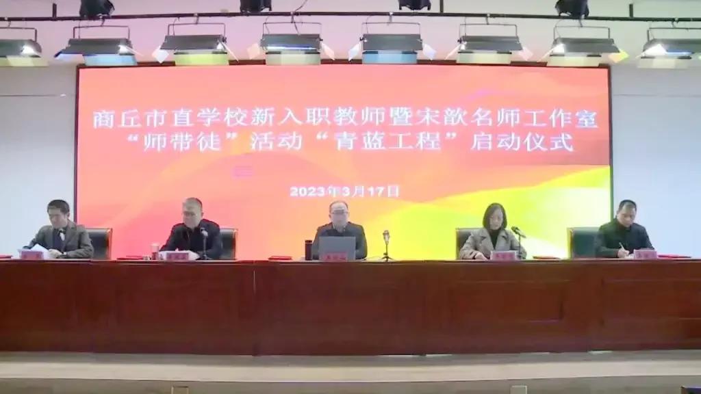 杨柳依依晓风清,桃红梨白春意浓。为提高青年教师的专业素养和教学能力,实现商丘市直学校的可持续发展。3月17日下午,商丘市直学校新入职教师暨宋歆名师工作室“师带徒”活动“青蓝工程”拜师仪式,在商丘市第一中学新校区举行。商丘市第一中学党委书记、校长王付山,商丘市教体局教师教育科科长李明慧,商丘市第一中学副校长薄延东,中原名师宋歆工作室助理李渊文,以及师徒代表和新入职教师等参加了启动仪式。