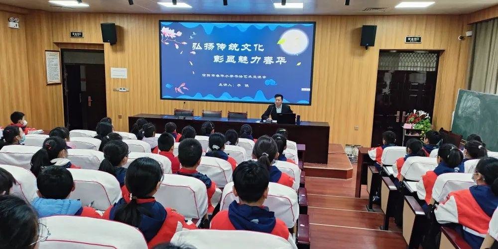 此次书法进校园活动中,李老师做了主题为“弘扬传统文化,彰显魅力春华”的讲座。各年级教师及学生代表聆听了讲座。