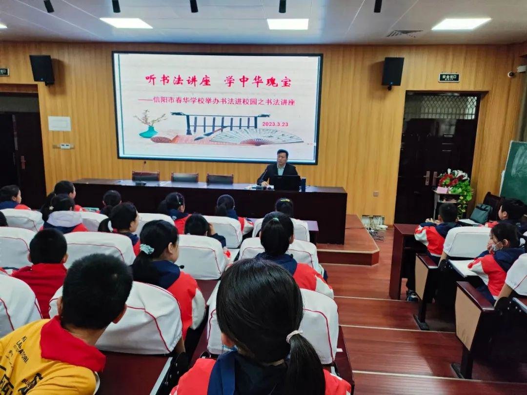 为弘扬和传承中华民族优秀传统文化,进一步激发师生对书法艺术的热爱,信阳市春华学校于3月23日下午在学校阶梯教室举办了书法进校园之书法艺术鉴赏讲座。
