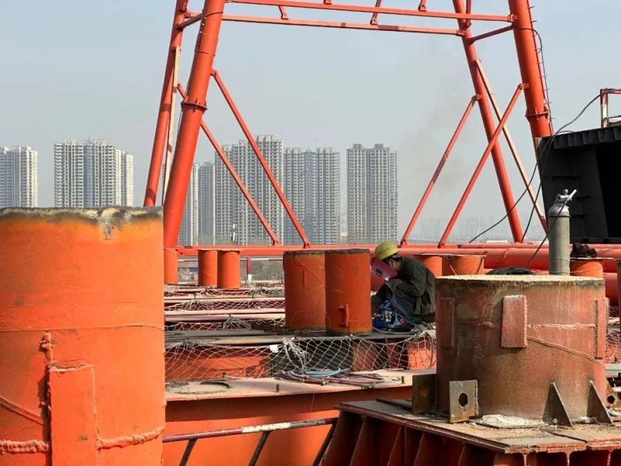 自2021年4月份以来,郑州铁路建设管理有限公司始终秉承 “安全建桥,建安全桥”的理念,抓安全,重质量,促进度,在打造平安优质工程的同时全力保障工程进度,先后完成了彩虹桥旧桥钢桁拱纵横移顶推拆解、新建主桥4轮钢箱梁顶推施工任务。