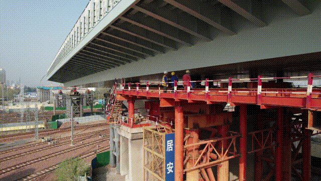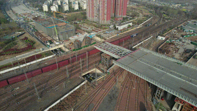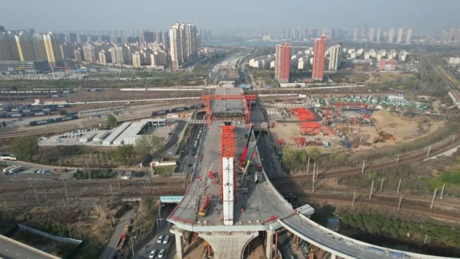 3月27日8时,随着彩虹桥新建主桥西跨钢梁导梁跨越郑州北编组站上发场顶推施工开始,郑州彩虹桥涉铁工程进入收尾阶段。新建主桥西跨钢箱梁顶推施工将在3月31日全部完成,距离通车更近一步。