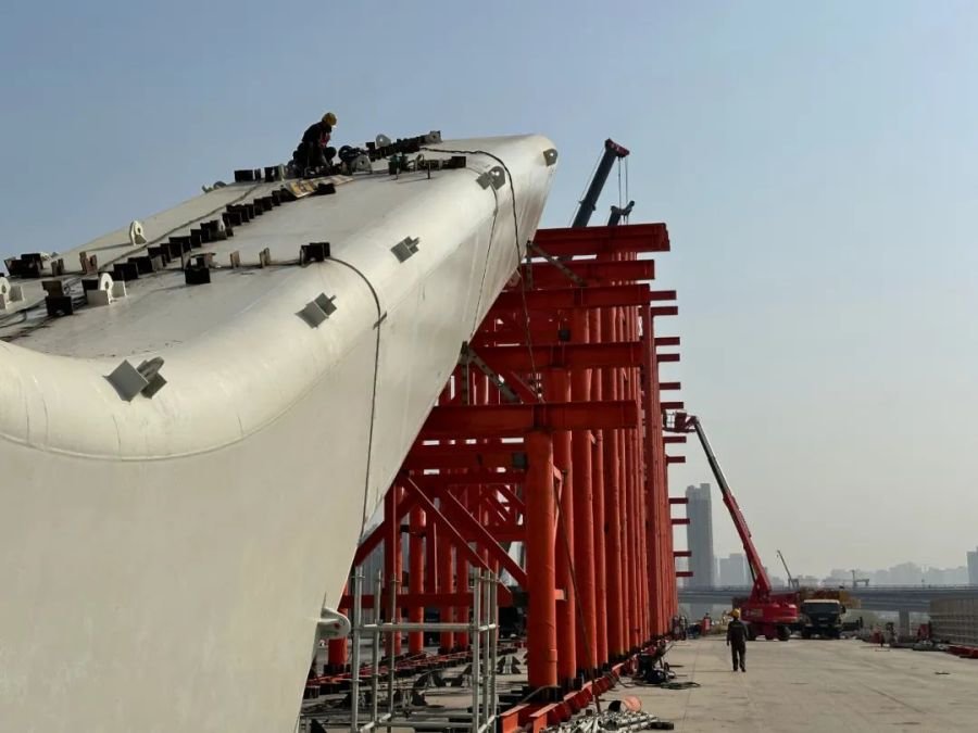 本次彩虹桥主桥钢箱梁顶推施工的顺利完成,为后续主桥钢箱拱、桥面系的施工奠定了坚实基础,在实现彩虹桥全线贯通的道路上迈出了坚实一步。