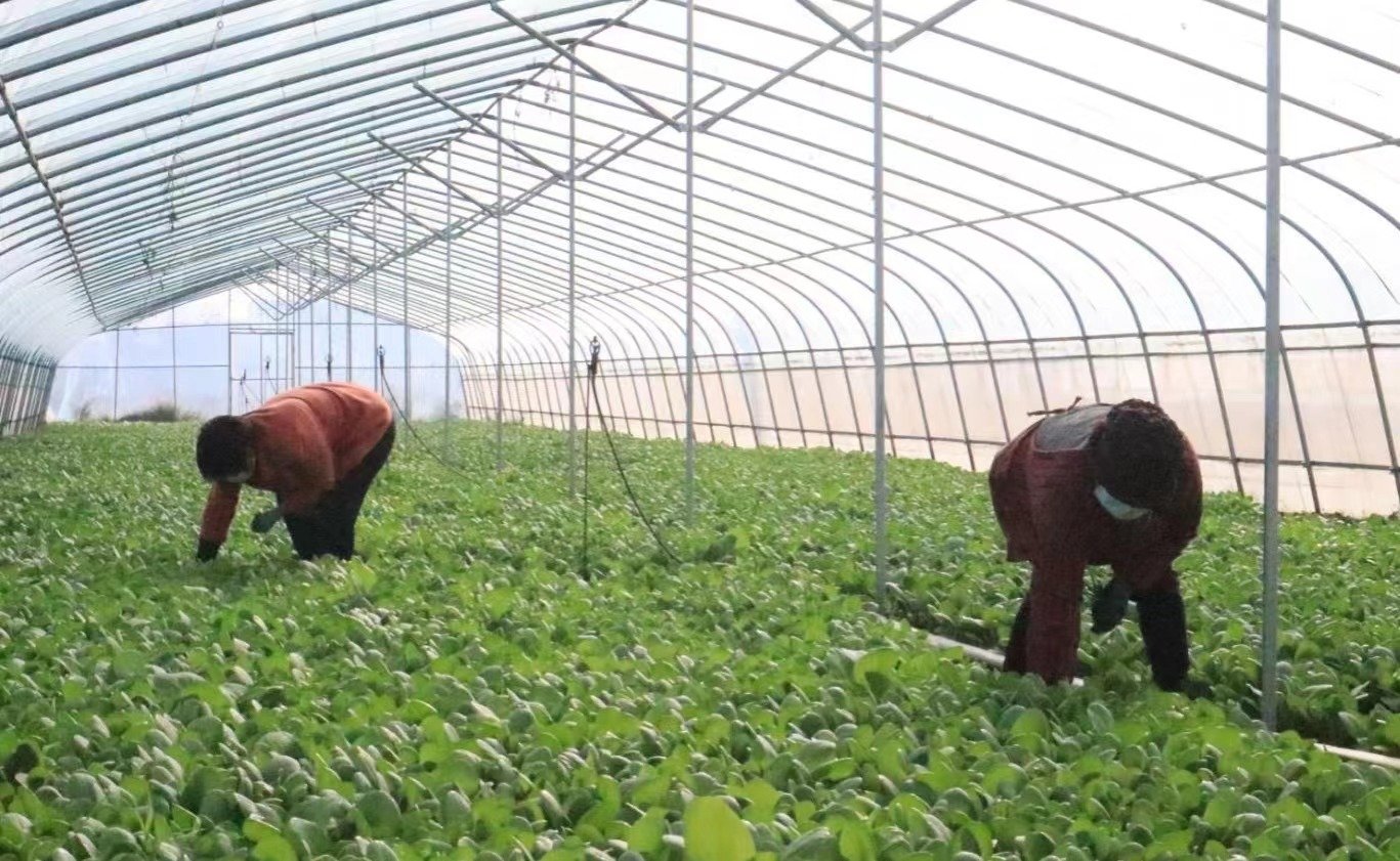 “俺们是蔬菜基地的工人,在家没事就来到这里打工,一天60块钱,一个月下来也能挣1000多块钱,虽然不多,但也能补贴家用。”郏县白龙庙村民刘秋仃一边把青菜装入筐中,一边笑哈哈地说道。
