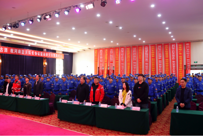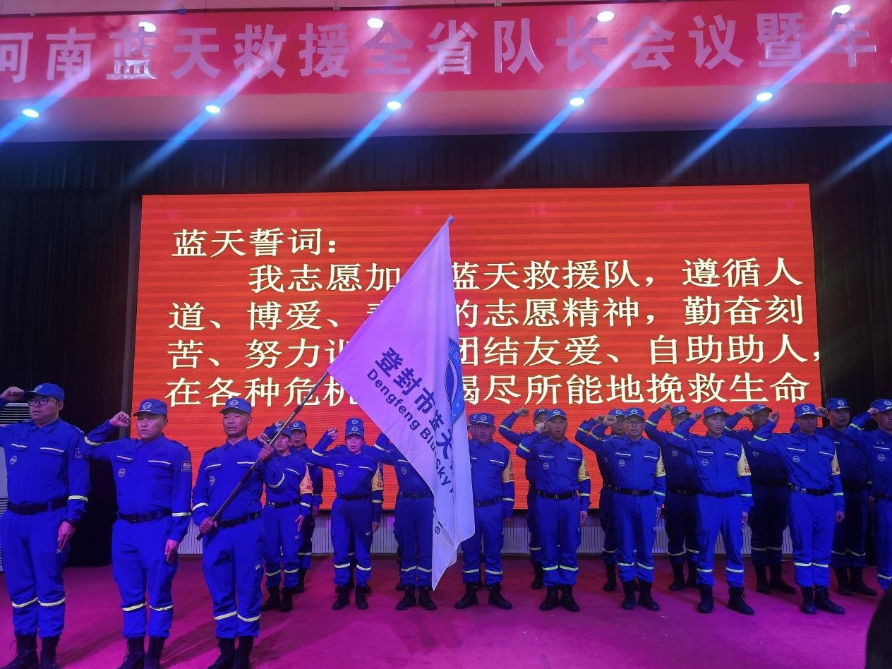 接着,会议宣读了蓝天救援登封队的晋级通知,并现场为登封队举行了授旗仪式,标志着自登封市蓝天救援队成立以来,得到了社会各界人士的广泛认可,获得了省蓝天救援的正式授旗。