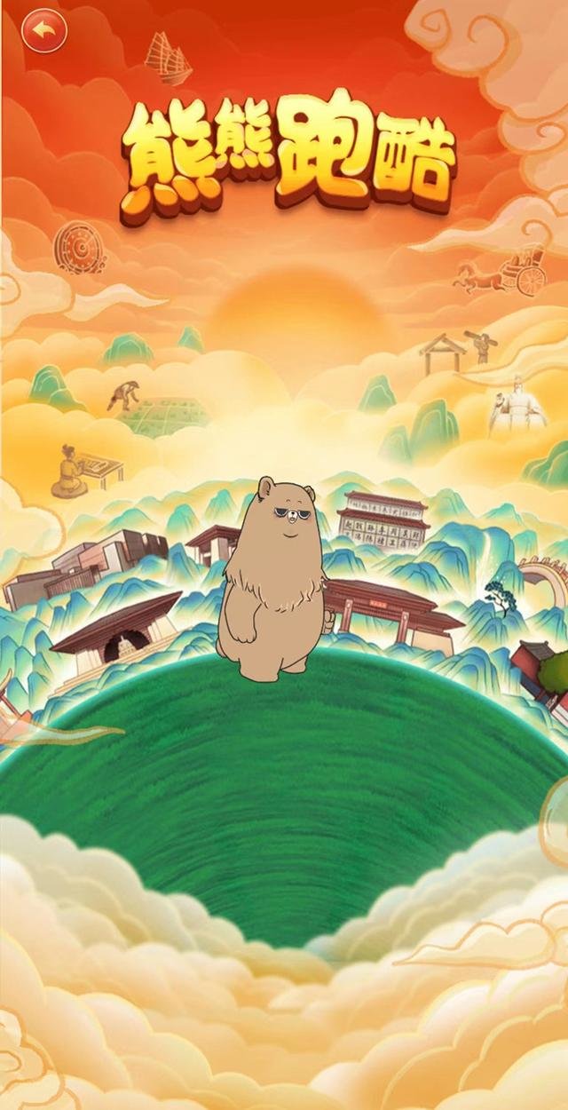 在“熊熊跑酷”板块,以“黄帝天团”有熊IP形象,通过跑酷方式,引领网友逐个达到寻根门、祭祖坛、拜祖庭、轩辕殿等地点,一起跑动华夏文化的寻根之旅。既在网上游览黄帝故里园区,也串联起黄帝文化中重要的历史人物和故事。通过答题,网友将收集黄帝、嫘祖、仓颉等“黄帝天团”IP形象卡片,最终合成“隐藏祝福卡”。