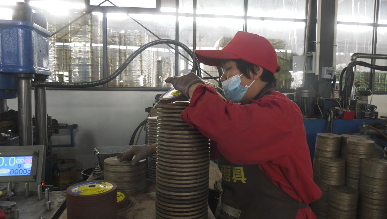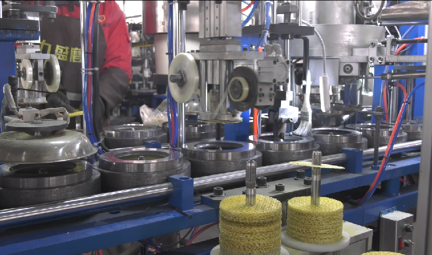 4月20日,笔者走进河南九盛磨料磨具年产2000吨磨料磨具生产线项目生产车间,只见生产车间内机器轰鸣,先进的磨料磨具自动化生产线上,工人在认真操作,一片片型号各异的树脂砂轮从生产线上飞跃而出,很快将送达全国各地的经销商处。