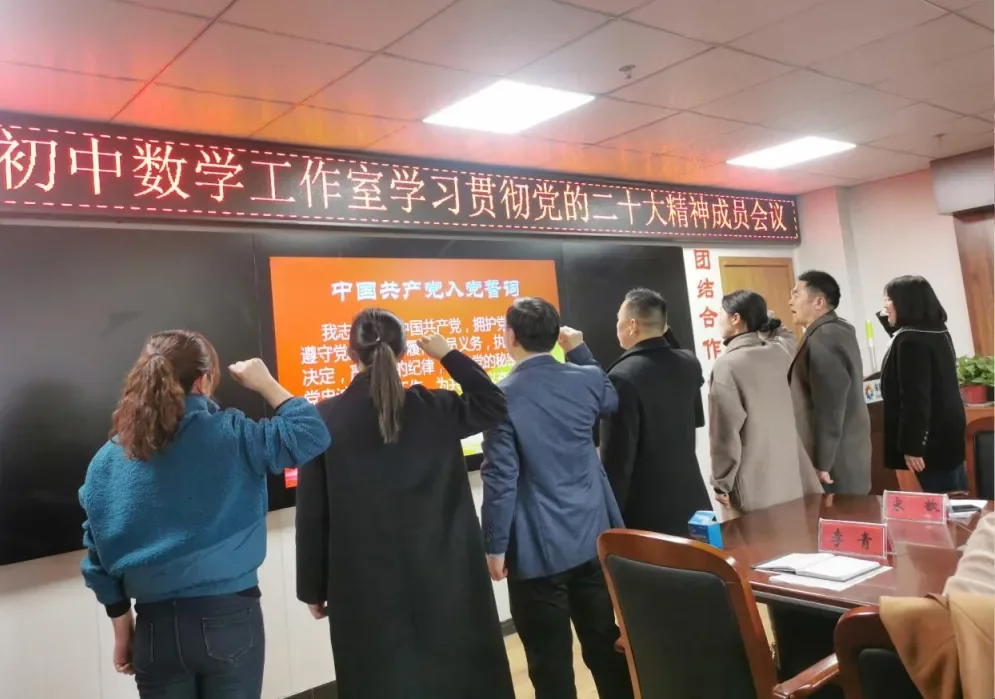强化党建引领,筑牢发展基石。近日,中原名师宋歆初中数学工作室组织全体党员及积极分子在商丘市第一中学新校区召开专题会议学习党的二十大精神。坚持“围绕中心抓党建,抓好党建促发展”的工作思路,要求工作室党员教师带头身先示范、干在实处、走在前列、当好表率。