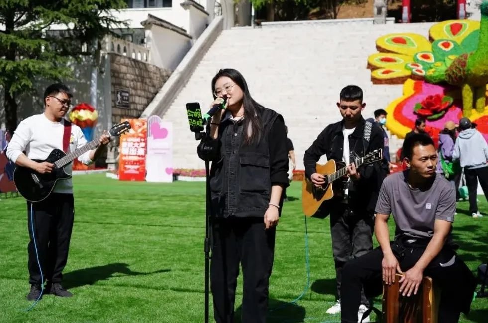 花田最民谣,浪漫的的音乐氛围,熟悉的民谣旋律,娓娓道来的动人歌声,为现场游人带来了一段浪漫的时光。