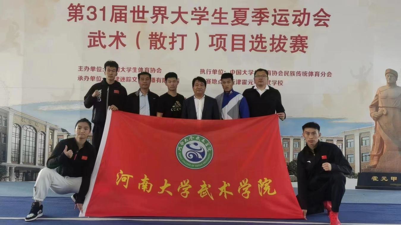 4月24日—29日,第31届世界大学生夏季运动会武术(散打)项目选拔赛在天津霍元甲文武学校举行。河南大学武术学院柳文龙在武术散打项目80公斤级比赛中获得冠军,7月28日—8月8日,柳文龙将代表中国参加第31届世界大学生夏季运动会武术散打比赛。