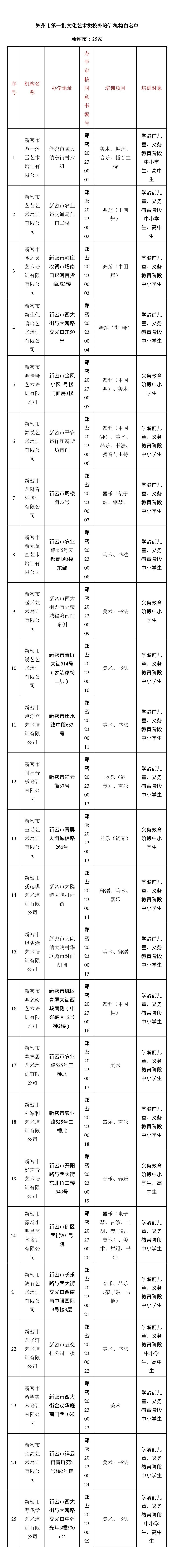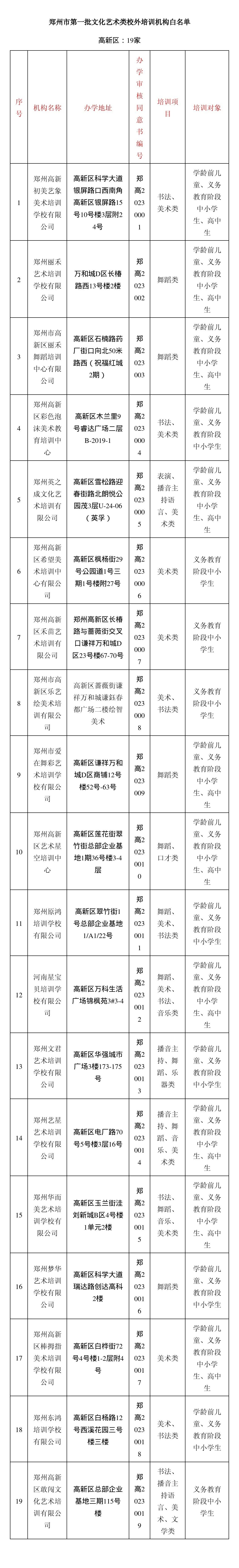 公布郑州市第一批文化艺术类校外培训机构白名单