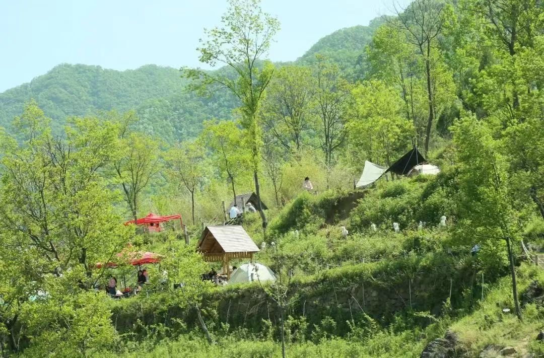 付店镇依托大步湾水库生态环境好的优势,结合山区峻秀的特点发展乡村游露营基地,优美的自然风光吸引游客慕名而来,在这里搭建露营帐篷,休闲旅游。