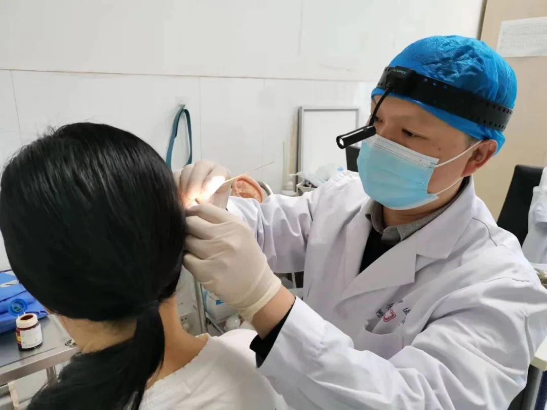 近日,42岁的陈某将一面写着“医德高尚 医术精湛”的锦旗送到漯河市中医院耳鼻喉科医护人员手中,旨在感谢耳鼻喉科副主任宋晓和主治医师黄俊杰及护理人员对其的精准治疗和悉心护理。耳鼻喉科副主任宋晓为患者做耳部检查
