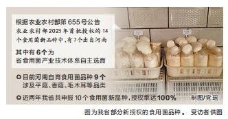 根据农业农村部第655号公告,农业农村部2023年首批授权的14个食用菌新品种中,有7个出自河南。在7个食用菌新品种中,省食用菌产业技术体系自主选育的有6个。