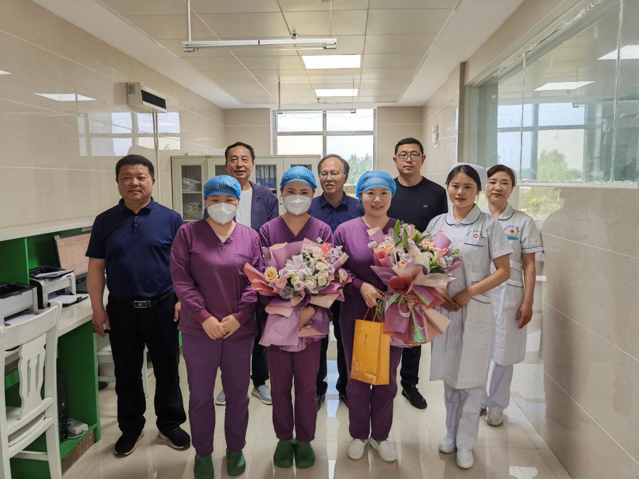 下午两点半,院长吴学良带领院班子成员、护理部主任深入全院各病区,为在院护士送上鲜花和礼品。院领导一边献花,一边祝贺节日快乐,随后与科室护士合影留念。护士站内欢声笑语,处处荡漾着喜庆氛围,所有人笑得像鲜花一样灿烂!