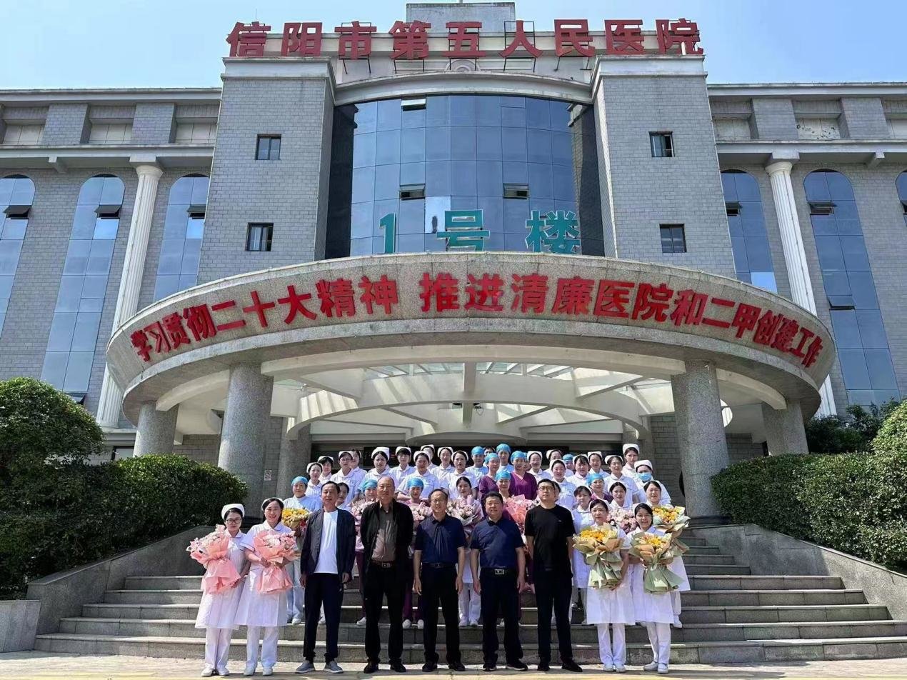 今天是第112个“5.12”国际护士节,信阳市传染病医院开展“5.12”国际护士节“我们的护士·我们的未来”庆祝活动。信阳市传染病医院全体领导班子成员为护士们献上鲜花和节日的祝福。