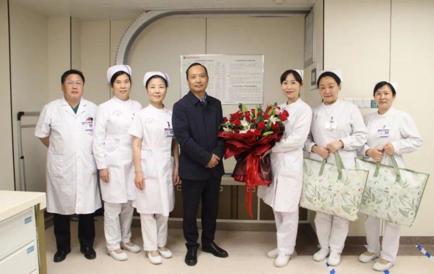 党委书记任书伟、院长张克俊、党委副书记郭晓华、副院长张明鸿、纪委书记方应洲、副院长夏庆彬、高兴军、彭庆杰、总会计师鲁新、副院长王春红,分别来到东、西两个院区,对9个护理集体代表及9个个人代表进行看望慰问。